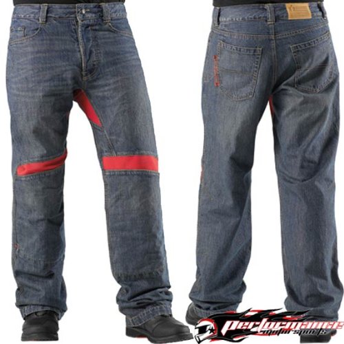 ICON VICTORY DARK-WASH BLUE/RED RIDING PANTS! 40 x 34 Reviews